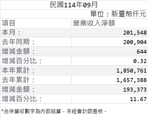 首頁 關於希華 新訊與活動 希華 2025 年 09月合併營收報告
