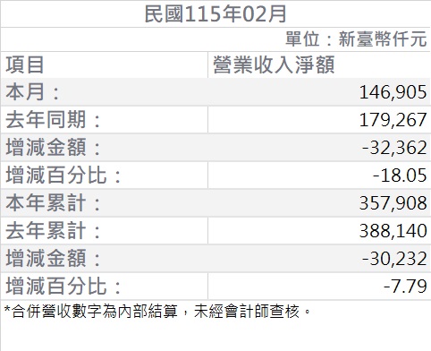希華 2026 年 2月合併營收報告